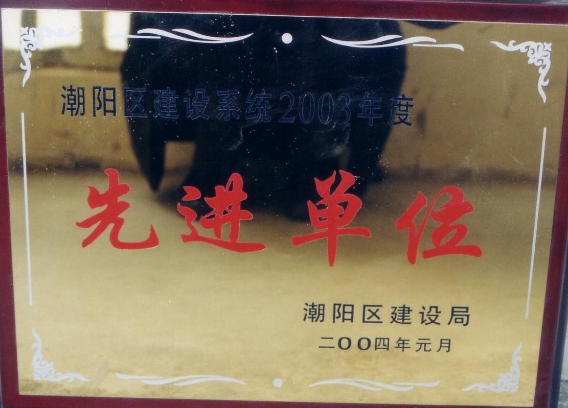 企業(yè)連續(xù)14年無發(fā)生過工程質(zhì)量和安全事故,有良好的社會信譽和經(jīng)濟效益,多年被我市評為“建設系統(tǒng)先進單位”。被潮陽市、汕頭市人民政府授予“重全同守信用”單位,和連續(xù)三年被市委授予“兩個文明建設先進”單位的稱號。同時,參與廣州市第三建筑有限公司承建的廣州市教委琶洲教師住宅小區(qū)B幢、C幢二項工程評為二000年度廣州市優(yōu)良樣板工程。參建的廣州芳村東教教師住宅小區(qū)D棟榮獲2003年度廣州市優(yōu)良榜樣工程。