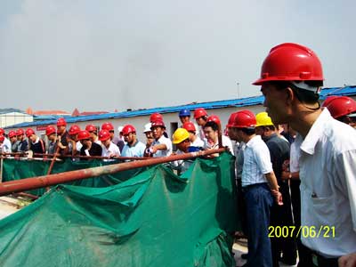 烈日炎炎,在熱火朝天的金葉島11B區(qū)的施工現(xiàn)場(chǎng),中國(guó)華西企業(yè)有限公司金葉島項(xiàng)目部總工程師黃子慎向與會(huì)人員介紹了該工程的概況,帶領(lǐng)大家參觀工地的施工用電、基坑、模板支撐等工程,并逐一介紹安全用電原理、基坑圍護(hù)措施、模板支撐的作法。會(huì)上,龍湖區(qū)安監(jiān)站黃柱群站長(zhǎng)向大家通報(bào)近期工地安全檢查情況,區(qū)建設(shè)局杜楚帆副局長(zhǎng)對(duì)近年來(lái)區(qū)建筑施工安全生產(chǎn)工作進(jìn)行總結(jié),并研究部署下來(lái)全區(qū)的建筑施工安全生產(chǎn)工作的開(kāi)展。最后,針對(duì)如何強(qiáng)化監(jiān)管、落實(shí)責(zé)任,嚴(yán)防建筑施工重特大惡性事故的發(fā)生,促進(jìn)全區(qū)建筑施工安全生產(chǎn)工作標(biāo)準(zhǔn)化開(kāi)展,區(qū)城管局局長(zhǎng)張義良同志提出四點(diǎn)要求:一是要強(qiáng)化安全責(zé)任意識(shí),進(jìn)一步抓好建筑施工安全生產(chǎn)工作;二是要狠抓好各項(xiàng)管理制度的落實(shí),保障施工安全;三是要嚴(yán)格執(zhí)行建設(shè)工程安全生產(chǎn)措施費(fèi)單列制度,確保建筑安全生產(chǎn)費(fèi)用的有效投入;四是要加強(qiáng)監(jiān)督管理,努力提高安全監(jiān)管水平。