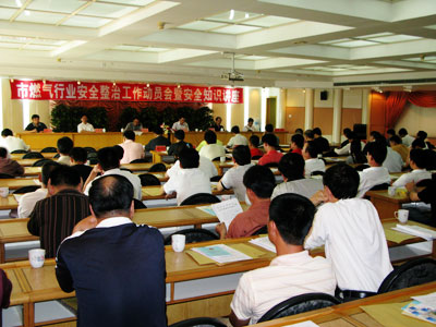 動員大會后,緊接著又舉辦燃?xì)獍踩R講座,市燃?xì)鈪f(xié)會肖烈光會長作了講話;市質(zhì)監(jiān)局葉揚(yáng)和王繼功同志分別就液化石油氣儲配站特種設(shè)備安全管理、瓶裝液化石油氣充裝與銷售法規(guī)知識進(jìn)行了詳細(xì)的輔導(dǎo)講解。