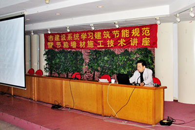 同時,講座邀請了我市部分新型節(jié)能墻材廠家的技術(shù)人員與會交流新型節(jié)能墻材施工技術(shù)。