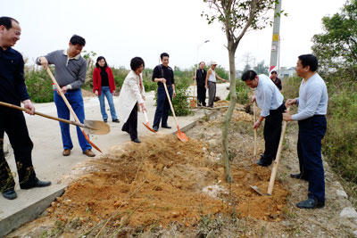 綠化工程是市建設(shè)局為該村規(guī)劃的科學(xué)發(fā)展措施之一。3月13日,在植樹節(jié)來(lái)臨之際,市建設(shè)局同駐村單位市總工會(huì)一起籌集資金購(gòu)買了榕樹近400株。該局在顏廷啟副局長(zhǎng)的帶領(lǐng)下,一行五十多人來(lái)到該村,和該村黨員干部一起,對(duì)村道兩旁和廣場(chǎng)進(jìn)行植樹綠化。湖邊小學(xué)的學(xué)生聞?dòng)?,也自發(fā)趕來(lái)參加植樹。
