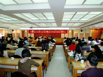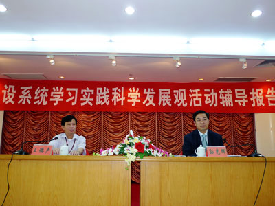 為扎實(shí)有效推動(dòng)建設(shè)系統(tǒng)學(xué)習(xí)實(shí)踐科學(xué)發(fā)展觀活動(dòng)的深入開展,把科學(xué)發(fā)展觀貫徹落實(shí)到推動(dòng)全市經(jīng)濟(jì)社會(huì)發(fā)展和建設(shè)系統(tǒng)黨的建設(shè)的各項(xiàng)工作中去,確保中央和省市提出的擴(kuò)內(nèi)需、調(diào)結(jié)構(gòu)、保增長、促發(fā)展等工作取得重要進(jìn)展。4月30日,市建設(shè)局邀請市委常委、市紀(jì)委書記孫光輝,為建設(shè)系統(tǒng)干部職工作深入學(xué)習(xí)實(shí)踐科學(xué)發(fā)展觀專題輔導(dǎo)報(bào)告,全市建設(shè)系統(tǒng)200多人聆聽了講座。會(huì)議由市建設(shè)局局長王德聲主持。