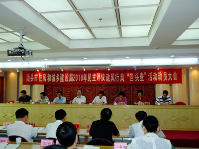 局長(zhǎng)王德聲同志作動(dòng)員講話,對(duì)我市住建系統(tǒng)今年開展“回頭查”的情況進(jìn)行了全面分析,指出了目前全系統(tǒng)政風(fēng)行風(fēng)建設(shè)方面存在的主要問題,并對(duì)全局下一階段工作提出了要求。一是要統(tǒng)一思想,提高認(rèn)識(shí),增強(qiáng)抓好政風(fēng)行風(fēng)“回頭查”工作的責(zé)任感;二是要突出重點(diǎn),統(tǒng)籌兼顧,扎實(shí)開展民主評(píng)議政風(fēng)行風(fēng)“回頭查”工作;三是要以開展“回頭查”工作為切入點(diǎn),進(jìn)一步提高執(zhí)行力,推動(dòng)住房城鄉(xiāng)建設(shè)工作上新臺(tái)階。