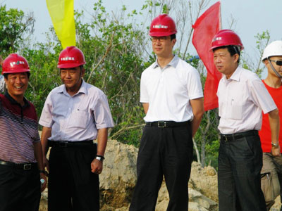 在聽取施工單位情況匯報(bào)后,徐凱同志表示,自本月 10 日施工單位進(jìn)場以來,項(xiàng)目建設(shè)各方克服各種困難,加快推進(jìn)驛站和景觀墻建設(shè),施工工作面已全面打開,施工進(jìn)度推進(jìn)較好,施工效果初步顯現(xiàn)。目前礐石綠道網(wǎng)示范段驛站基坑已開挖完畢,正在進(jìn)行基座澆筑;海灣廣場正在打樁,并完成 40% 的工程量。
