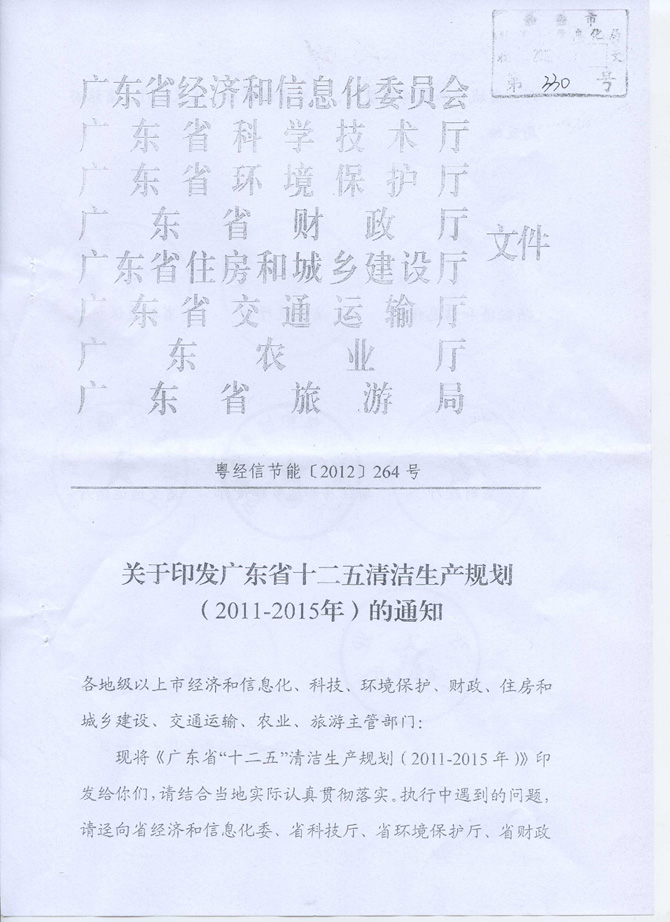 轉(zhuǎn)發(fā)省經(jīng)信委等八部門關(guān)于印發(fā)廣東省十二五清潔生產(chǎn)規(guī)劃(2011-2015)的通知