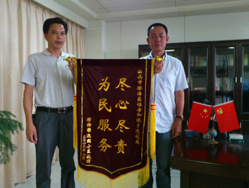 由于此事處理及時得當(dāng),雅逸園小區(qū)住戶都感到十分滿意,特將一面“盡心盡責(zé),為民服務(wù)”的錦旗贈送澄海區(qū)住建局。