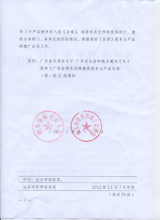 轉(zhuǎn)發(fā)廣東省科學(xué)技術(shù)廳廣東省住房和城鄉(xiāng)建設(shè)廳關(guān)于發(fā)布《廣東省綠色低碳建筑技術(shù)與產(chǎn)品目錄(第一批)》的通知汕府科[2012]98號