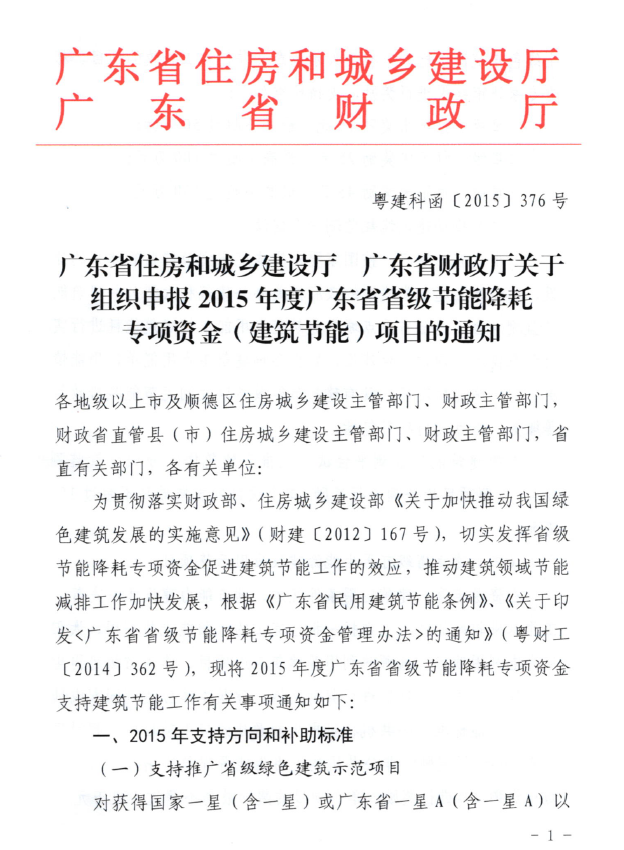 廣東省住房和城鄉(xiāng)建設(shè)廳、廣東省財政廳關(guān)于組織申報2015年度廣東省省級節(jié)能降耗專項資金(建筑節(jié)能)項目的通知