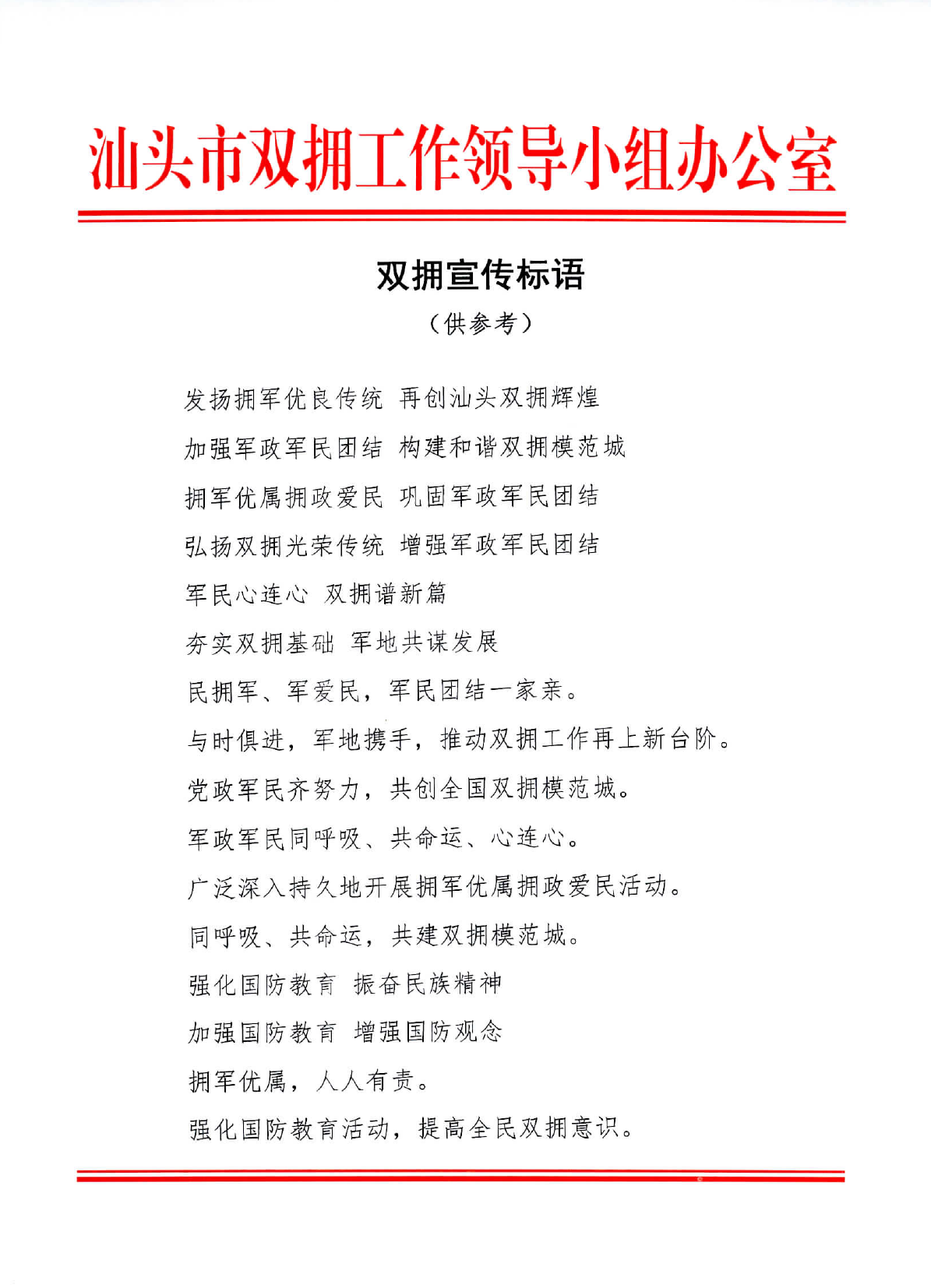 附件:雙擁宣傳標(biāo)語