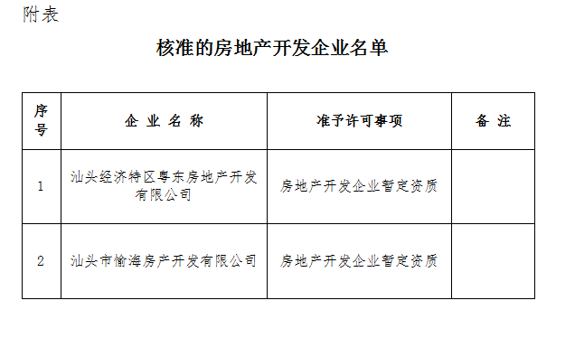根據(jù)《中華人民共和國行政許可法》、《中華人民共和國城市房地產管理法》和有關房地產開發(fā)企業(yè)資質管理規(guī)定,現(xiàn)將經我局審查核準的房地產開發(fā)企業(yè)名單予以公布(見附表)。