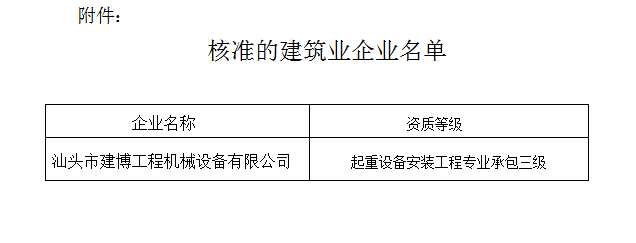 根據(jù)《中華人民共和國行政許可法》、《中華人民共和國建筑法》和有關建設工程企業(yè)資質管理規(guī)定,現(xiàn)將經我局審查核準的建筑業(yè)企業(yè)名單予以公布(見附件)。