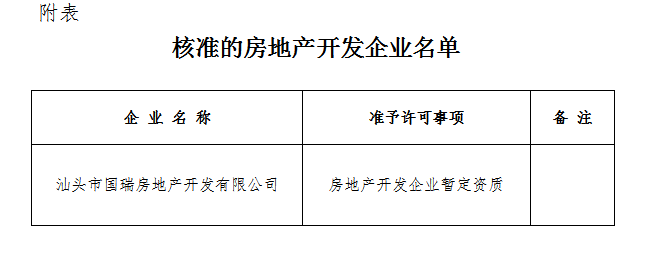 關(guān)于房地產(chǎn)開(kāi)發(fā)企業(yè)資質(zhì)核準(zhǔn)結(jié)果的公告汕住建公告〔2016〕31號(hào)