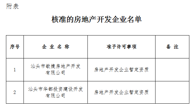 關(guān)于房地產(chǎn)開發(fā)企業(yè)資質(zhì)核準(zhǔn)結(jié)果的公告汕住建公告〔2016〕34號