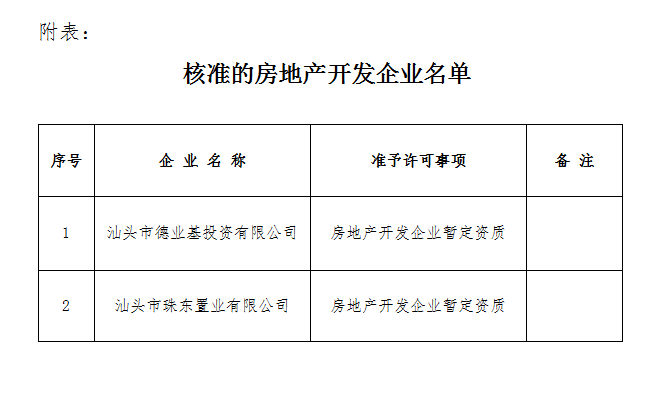 關(guān)于房地產(chǎn)開發(fā)企業(yè)資質(zhì)核準(zhǔn)結(jié)果的公告汕住建公告〔2016〕35 號(hào)