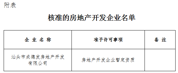 關(guān)于房地產(chǎn)開發(fā)企業(yè)資質(zhì)核準結(jié)果的公告 汕住建公告〔2017〕39 號