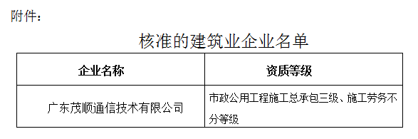 根據(jù)《中華人民共和國(guó)行政許可法》、《中華人民共和國(guó)建筑法》和有關(guān)建設(shè)工程企業(yè)資質(zhì)管理規(guī)定,現(xiàn)將經(jīng)我局審查核準(zhǔn)的建筑業(yè)企業(yè)名單予以公布(見附件)。