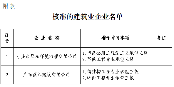 根據(jù)《中華人民共和國行政許可法》、《中華人民共和國建筑法》和有關建設工程企業(yè)資質管理規(guī)定,現(xiàn)將經(jīng)我局審查核準的建筑業(yè)企業(yè)名單予以公布(見附表)。