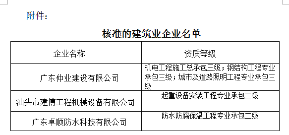 關(guān)于建筑業(yè)企業(yè)資質(zhì)核準(zhǔn)結(jié)果的公告汕住建公告〔2017〕62號