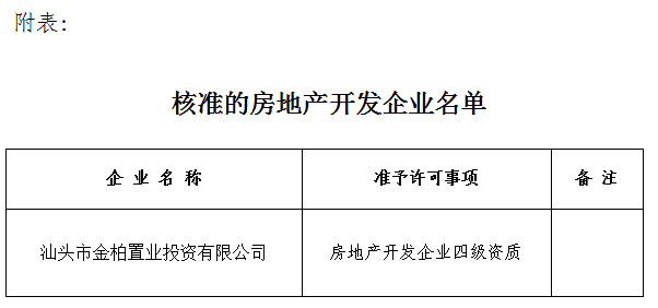 根據(jù)《中華人民共和國行政許可法》、《中華人民共和國城市房地產(chǎn)管理法》和有關房地產(chǎn)開發(fā)企業(yè)資質(zhì)管理規(guī)定,現(xiàn)將經(jīng)我局審查核準的房地產(chǎn)開發(fā)企業(yè)名單予以公布(見附表)。