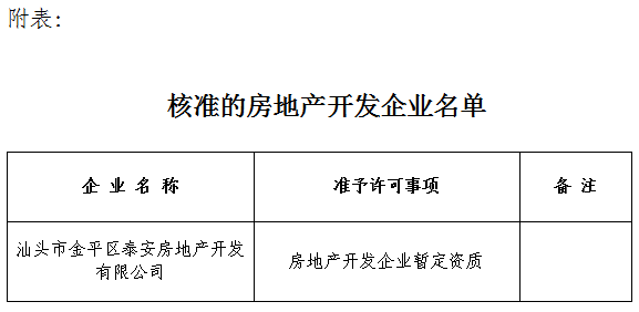 關(guān)于房地產(chǎn)開(kāi)發(fā)企業(yè)資質(zhì)核準(zhǔn)結(jié)果的公告 汕住建公告〔2018〕12號(hào)