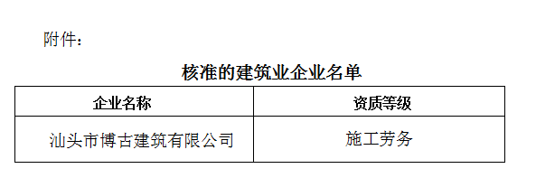 關(guān)于建筑業(yè)企業(yè)資質(zhì)核準(zhǔn)結(jié)果的公告汕住建公告〔2018〕20號(hào)