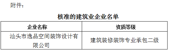 根據(jù)《中華人民共和國行政許可法》、《中華人民共和國建筑法》和有關(guān)建設(shè)工程企業(yè)資質(zhì)管理規(guī)定,現(xiàn)將經(jīng)我局審查核準(zhǔn)的建筑業(yè)企業(yè)名單予以公布(見附件)。