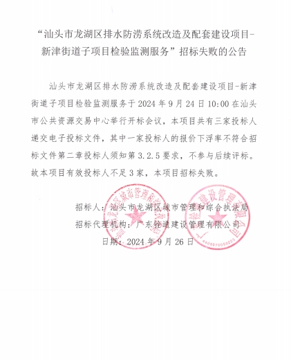 汕頭市龍湖區(qū)排水防澇系統(tǒng)改造及配套建設(shè)項(xiàng)目-新津街道子項(xiàng)目檢驗(yàn)監(jiān)測服務(wù)%>