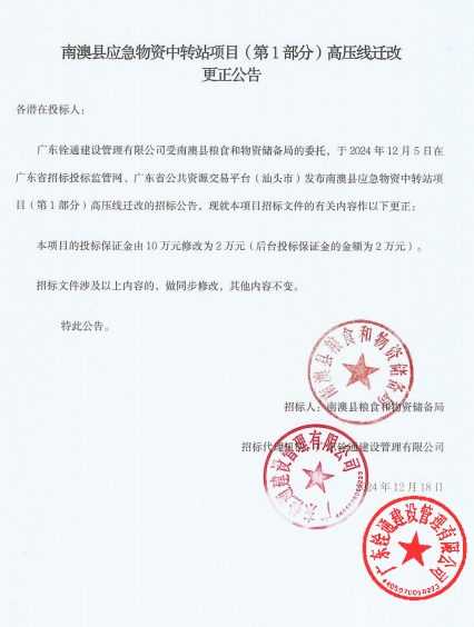 南澳縣應(yīng)急物資中轉(zhuǎn)站項(xiàng)目(第1部分)高壓線遷改