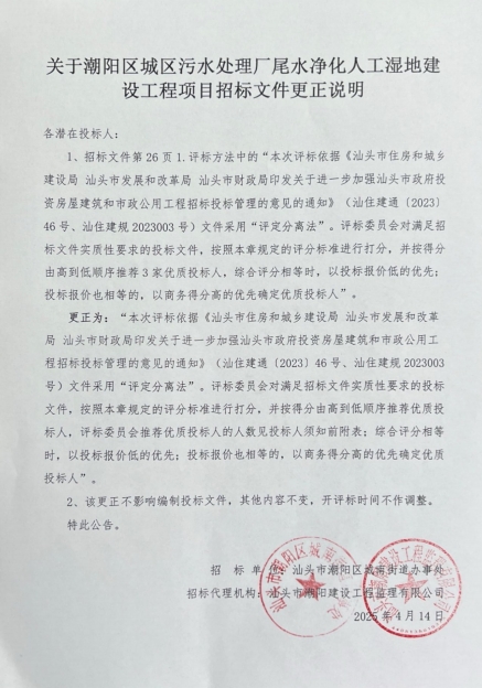 潮陽(yáng)區(qū)城區(qū)污水處理廠尾水凈化人工濕地建設(shè)工程項(xiàng)目