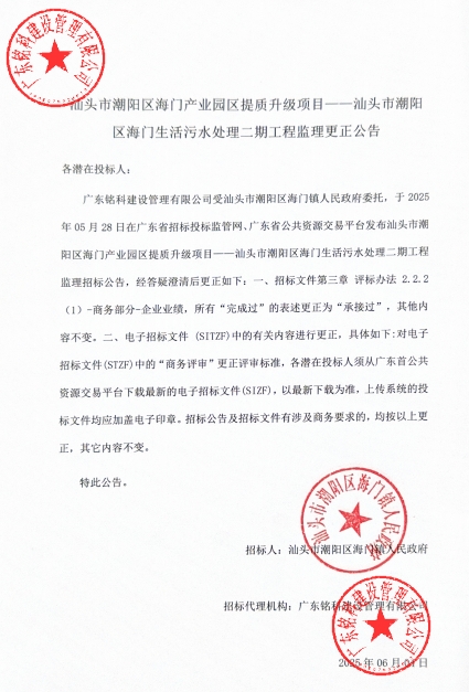 汕頭市潮陽區(qū)海門產(chǎn)業(yè)園區(qū)提質(zhì)升級(jí)項(xiàng)目——汕頭市潮陽區(qū)海門生活污水處理二期工程監(jiān)理