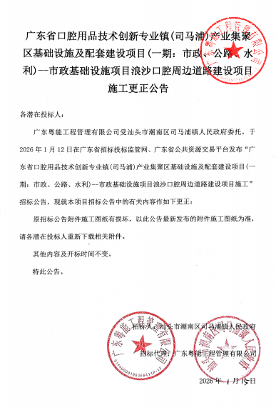 廣東省口腔用品技術(shù)創(chuàng)新專業(yè)鎮(zhèn)(司馬浦)產(chǎn)業(yè)集聚區(qū)基礎(chǔ)設(shè)施及配套建設(shè)項目(一期:市政、公路、水利)--市政基礎(chǔ)設(shè)施項目浪沙口腔周邊道路建設(shè)項目施工