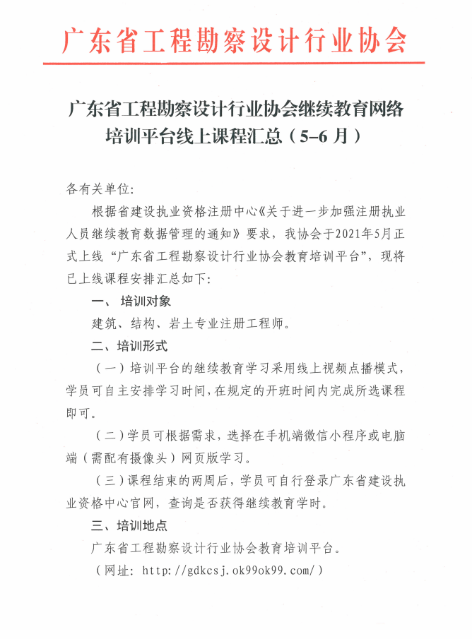 轉(zhuǎn)發(fā)《廣東省工程勘察設(shè)計(jì)行業(yè)協(xié)會(huì)繼續(xù)教育網(wǎng)絡(luò)培訓(xùn)平臺(tái)線上課程匯總(5-6月)》