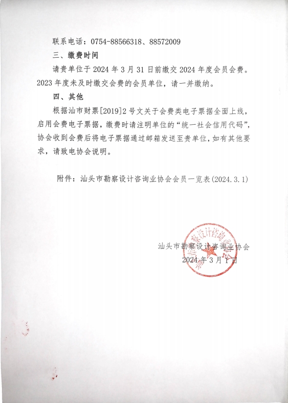 汕頭市勘察設(shè)計(jì)咨詢業(yè)協(xié)會關(guān)于繳交2024年度會員會費(fèi)的通知