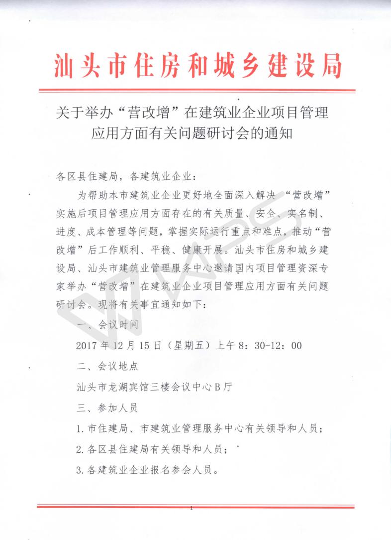 關(guān)于舉辦“營改增”在建筑業(yè)企業(yè)項目管理應(yīng)用方面有關(guān)問題研討會的通知
