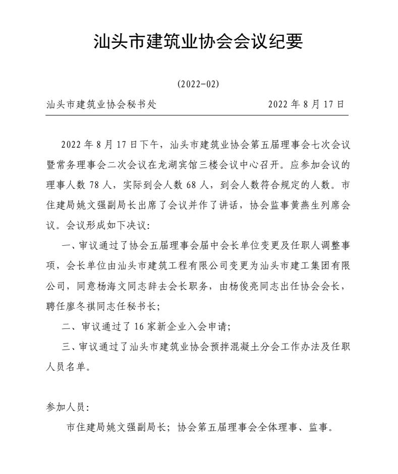 汕頭市建筑業(yè)協會會議紀要